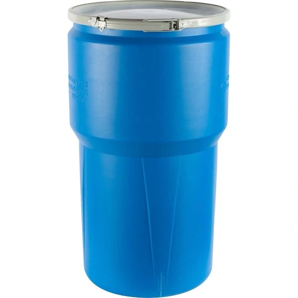 15 Gallon Blue Plastic Drum, Taper Sided, UN Rated, Cover w/Metal Lever Lock