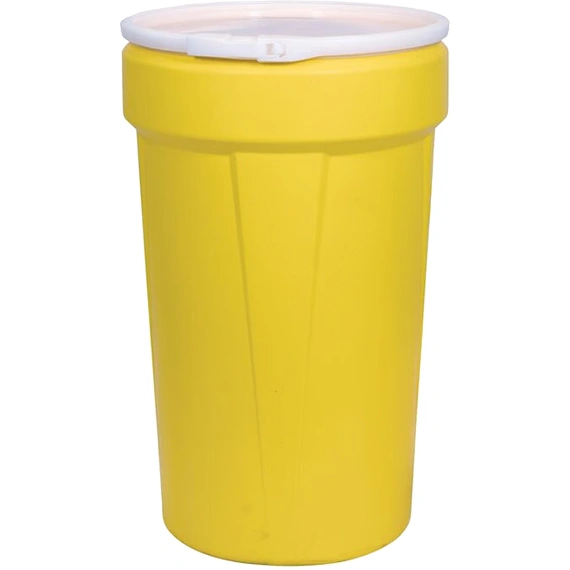 56BT5Y is a 55 gallon yellow taper sided lab pack open head drum with a plastic lever lock closure. This lightweight but durable plastic drum is suited to store both hazardous and non-hazardous materials. HDPE drums are ideal for handling and transporting hazardous materials, storing spill kits, spill containment, biowaste disposal, and shipping. This HDPE drum is also food grade so it can store a wide variety of products. Lab packs are often used with non-damaged bottles, cans, carboys, and 5-gallon pails of non-leaking hazardous materials. The vibrant yellow color is useful for color-coding in a warehouse or other facilities and is easily noticeable. The lever lock ring holds the cover on to the container with a latch that is pulled from one side to the other and applies torque to the two ring ends in a similar fashion to the bolt ring. No torque wrench is required to close.